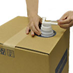 | ▲箱上面の円を切り取ります。 | ▲蛇口用キャップに付け変えます。(蛇口キャップは、箱の中に入っています。) | ▲蛇口が下向きになるよう箱の向きを変えます。 | ▲これでいつでも使う事ができる状態です。 |